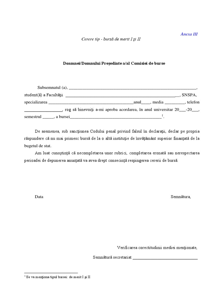Cerere de bursă, conform formular tip. Nesimțirea ca model de comportament la nivel de stat. Menționez că la sfârșitul acordare a bursei, elevii pot pierde bursa dacă nota la purtare este mai mică de 10.
