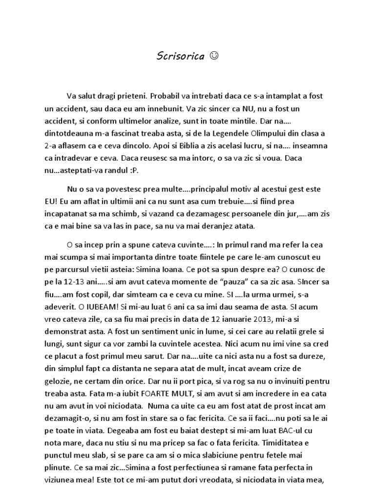 vizitati articolul complet aici : http://lume.bassin.ru/mesaje-de-ramas-bun-moarte/ 0 ratings0% found this document useful (0 votes). (scrisoare conceputa in noaptea mortii sale). Ce culoare aveau ochii tai?
