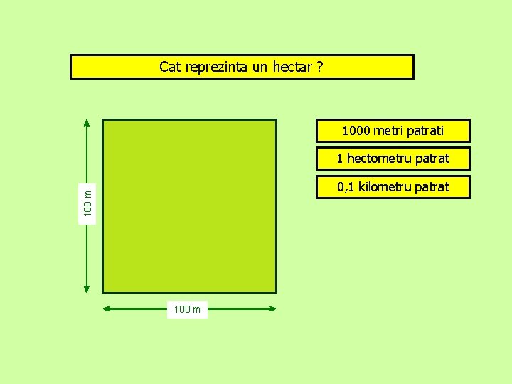 Un hectar (ha) are 10.000 metri patrati (m�). Hambare, cocini, cotete și altele.